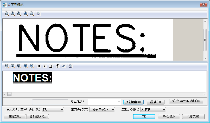 ラスター印刷文字を AutoCAD のマルチ テキストに変換する