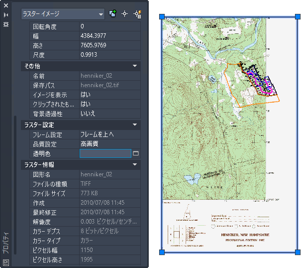 この練習を行う前に、AutoCAD Raster Design ツールセットのオプションが「練習 A1: AutoCAD Raster Design ツールセットのオプションを設定する」で説明したとおりに設定されていることを確認します。