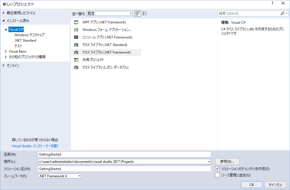 Visual Studio の[新しいプロジェクト]ダイアログ