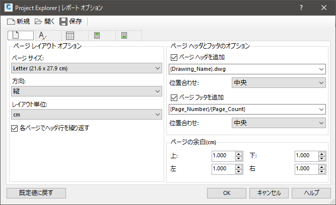 このダイアログ ボックスで、出力レポートのレイアウトを定義します。