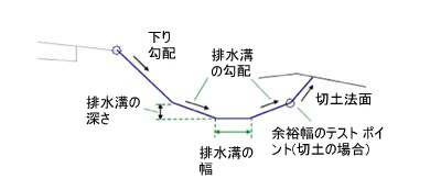下り法面勾配 | 排水溝下り法面リンクの勾配 | 数値、正 | 3 ( : 1) |