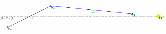 AP1は P2 からの勾配で[Surface]上に描画された補助ポイントです。P3 と L2 は、P2 と AP1 の間の補間距離に描画されます。