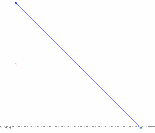 サンプル PKT では、P2 はサーフェス上に、P1 から指定されたデルタ X 値で作成されています。