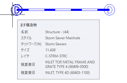 ツールチップに、その排水ますに割り当てられている積算費目の説明と ID が表示されます。