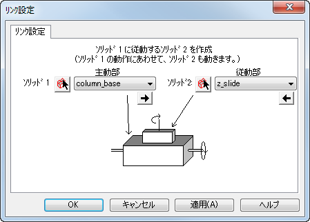 [マシン デザイン] タブ > [コンフィギュレーション] パネル > [リンク設定] から、リンク設定 ダイアログを表示します。