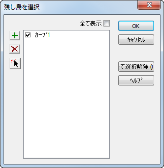 ボタンをクリックして 残し島を選択 ダイアログを表示し、残し島の輪郭となるカーブを指定します。