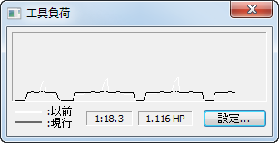 この例では、現在の工具負荷(黒)に、以前の工具負荷(白)のような大きなぶれがないことが分かります。