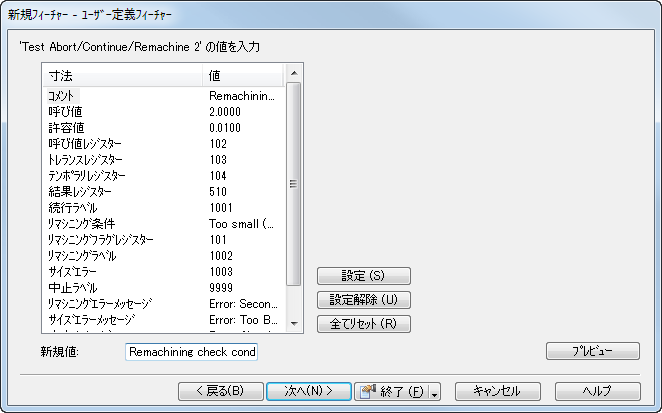 リマシニング フラグ レジスター - フィーチャーのリマシニング回数のレジスターです。