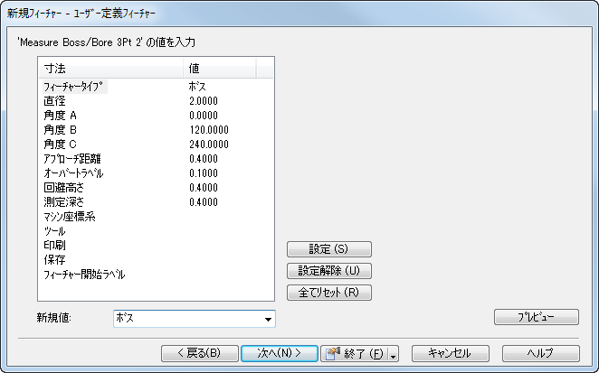 フィーチャー タイプボスボーリング障害回避ボーリング のいずれかを選択します。