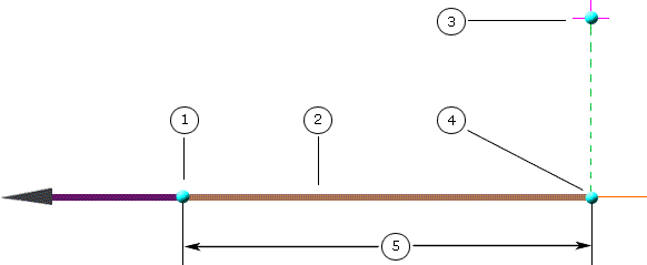 1 - 接続点、2 - 接続軸と接続方向、3 - 接続軸上にない作業点、4 - 作業点の垂直ルート、5 - MaxEP
