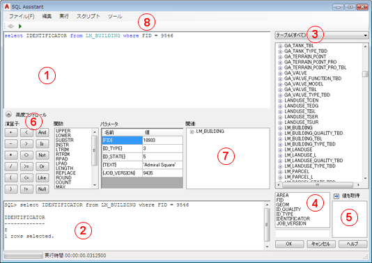 [SQL アシスタント]ダイアログ ボックスは、次のコンポーネントで構成されています。