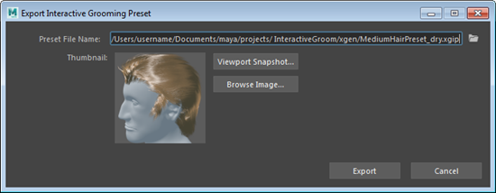 既定では、プリセット ファイルは現在設定されている Maya プロジェクトの xgen フォルダに保存されます。