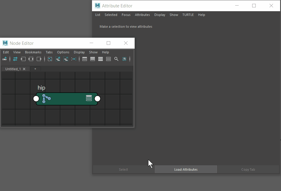 ノードの動作を調整するには、ノードを選択し、アトリビュート エディタ(Attribute Editor)のノードの動作(Node Behavior)セクションを展開します。