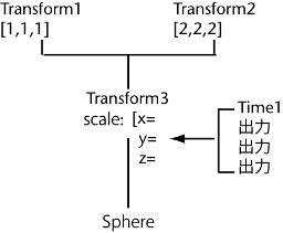 しかし、ローカルからワールドへのポイントの変換は複雑になることがあります。ノードが、行列を全く必要としないプロシージャ変換を実装することは簡単です。これは概念的には、ローカル空間内のポイントが一連の「ブラック ボックス」の中を渡されるようなアーキテクチャです。各ボックスはポイントの位置に影響を与えますが、ボックスの中身が何であるかは全く分かりません。