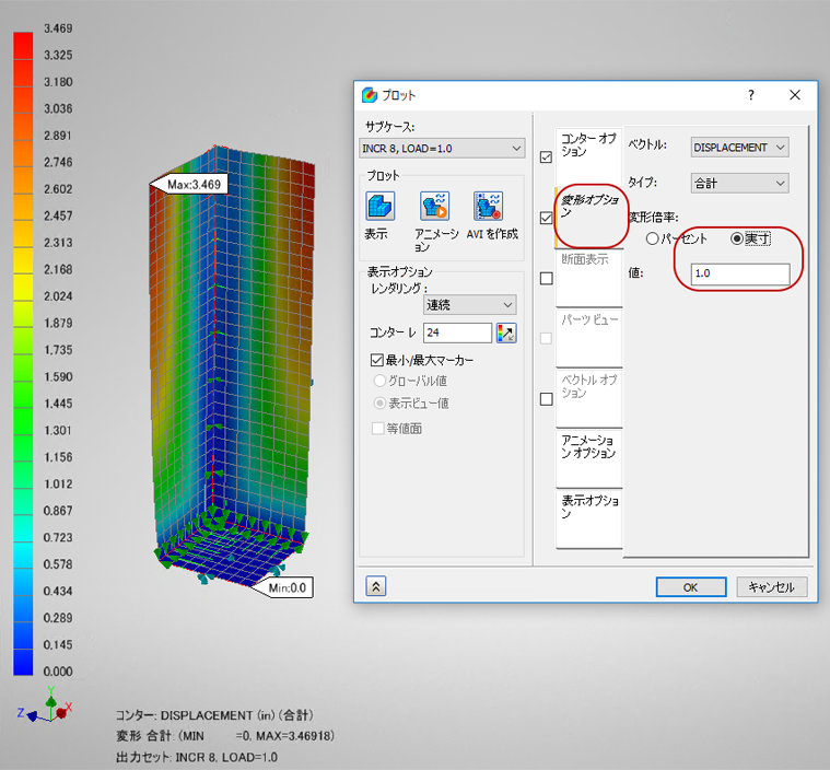 この解析を線形静解析および非線形解析として実行し、結果を比較します。