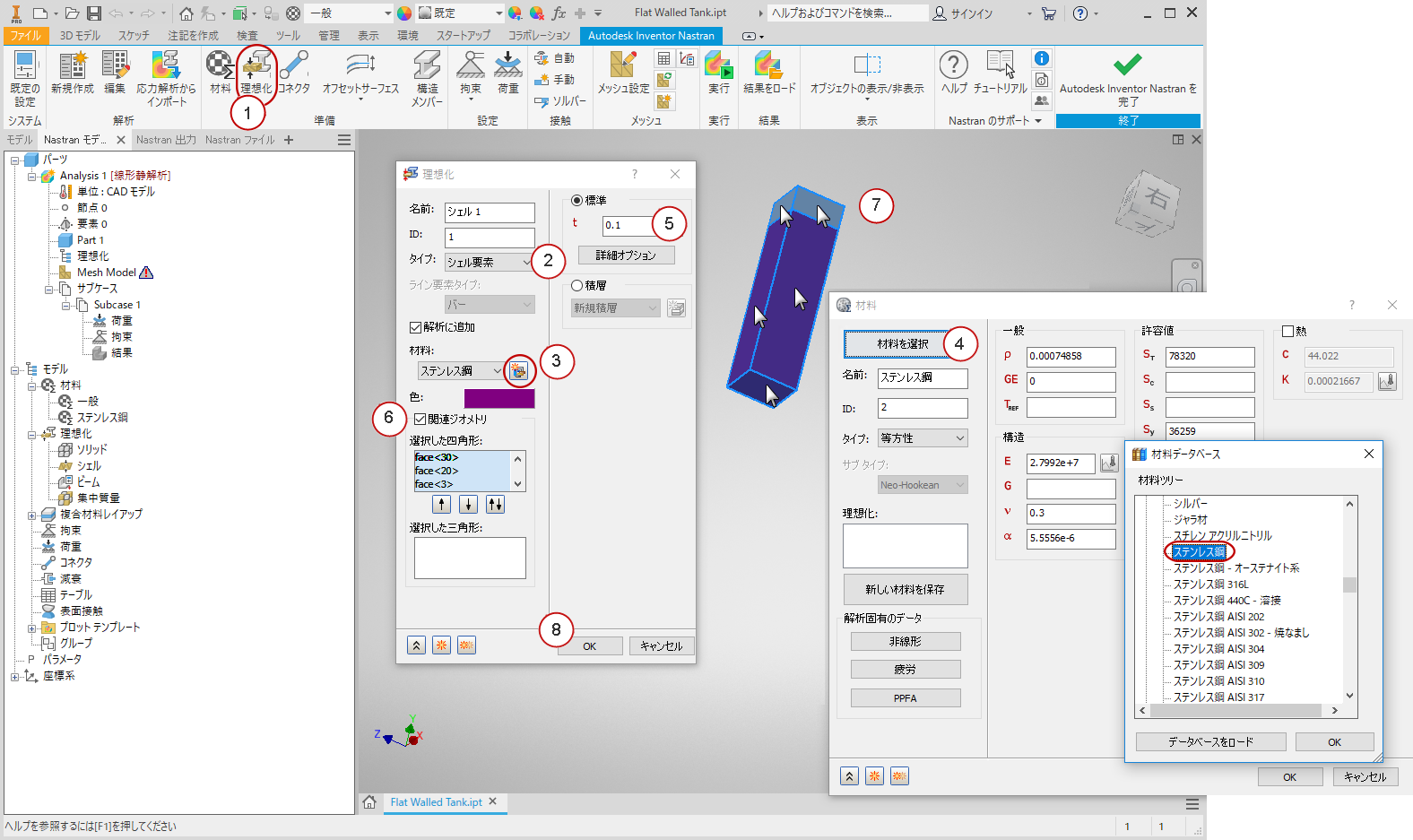 2. [理想化]ダイアログ ボックスで、[タイプ][シェル要素]に設定します。