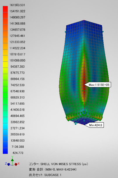 変位およびフォンミーゼス応力の両方の結果プロットで、タンクに問題があることが示されます。
