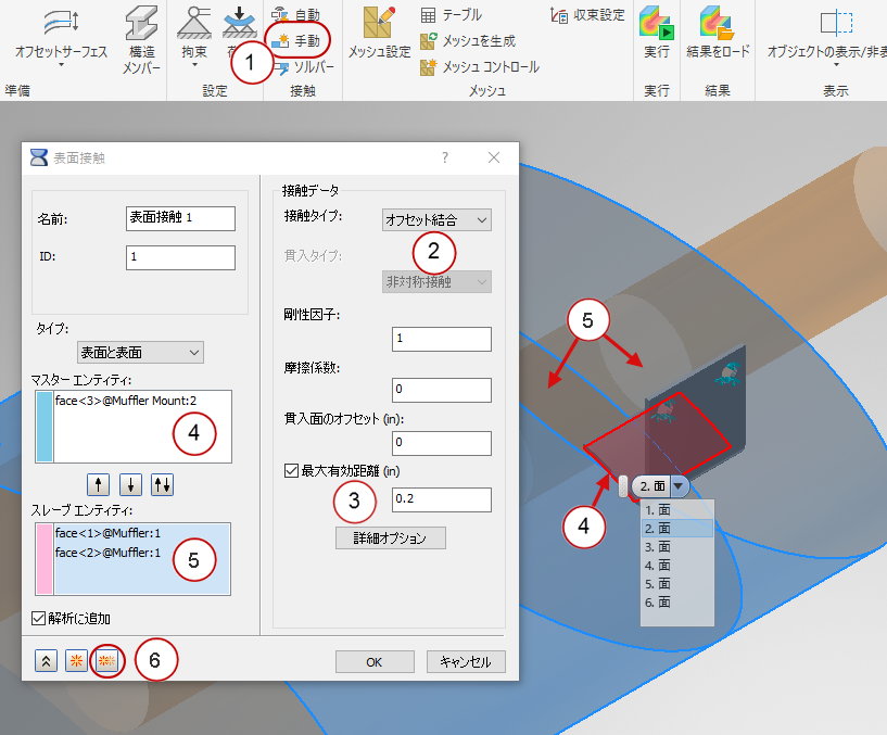 - [セカンダリ エンティティ]フィールドの中をクリックして、ブラケットに接触するマフラーの隣接する 2 面を選択します。