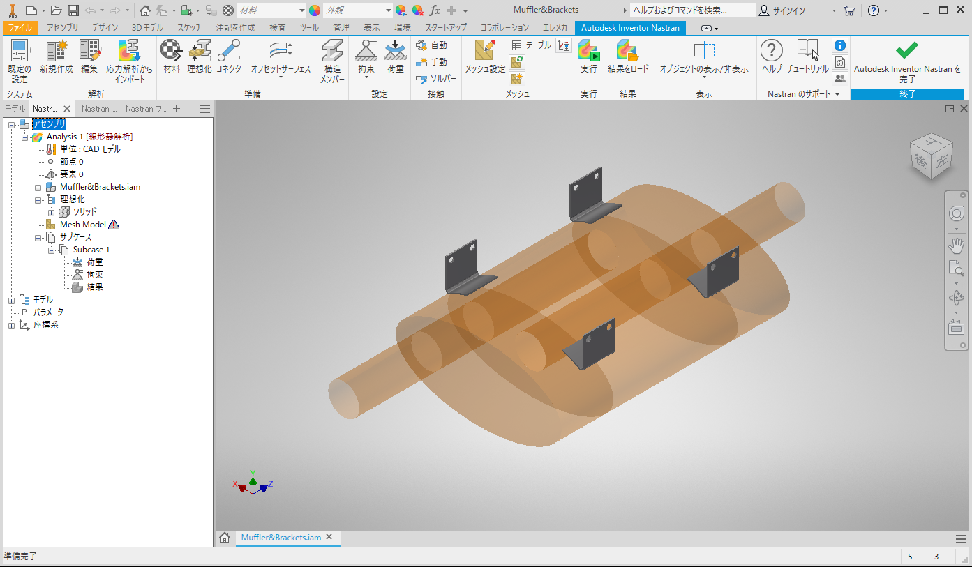 1. モデルを開き Autodesk Inventor Nastran の環境を起動する