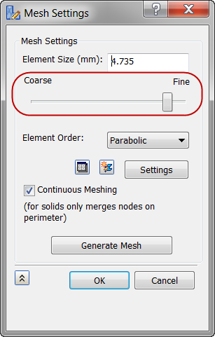 [許容誤差]の設定は、メインの[メッシュ設定]ダイアログ ボックスの[設定]ボタンで開くことができる[メッシュ詳細オプション]ダイアログに移動しました。