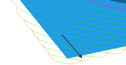 最後のリードアウト - サーフェス法線円弧、距離 - 0、角度 - 90、半径 - 5