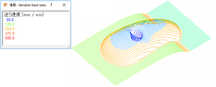 ツールパスに可変送り速度が指定されている場合、電球