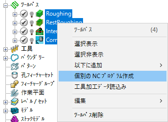 これらのツールパスをポストプロセスする方法については、ツールパスのポストプロセス方法を参照してください。