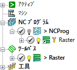 NC プログラムが非アクティブでも、既存のツールパスのドラッグアンドドロップにより NC プログラムへの追加が可能です。