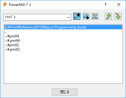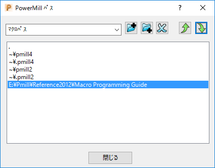 新しいマクロ検索パスを追加するには、マクロ メニューからマクロ パス オプションを選択します。[PowerMill パス] ダイアログが表示されます。