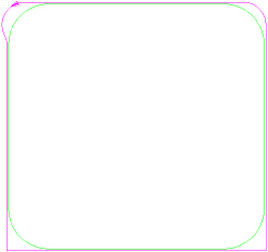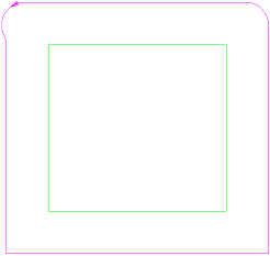 マシンは工具半径を補正し、PowerMill は凹コーナーに円弧を追加して、マシンがツールパスを拒否するのを防ぎます。最小半径 フィールドは、工具半径オフセット後のコーナーの円弧のサイズを制御します。これにより、ほとんどのマシンで凹コーナーの輪郭を正確に表すことができます。