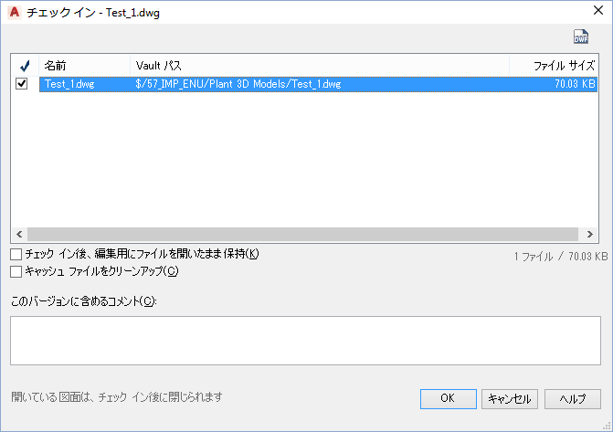Vault に新規ファイルまたは既存のファイルをチェック インします。