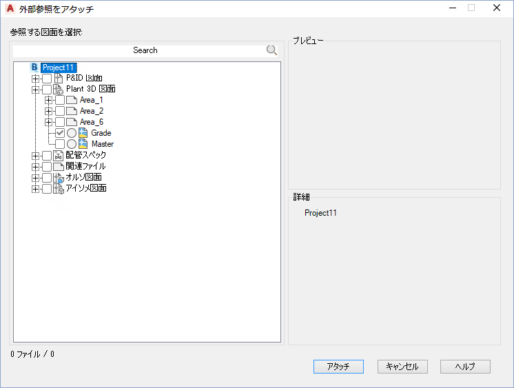 Vault からのプロジェクト図面ファイルをアタッチします。