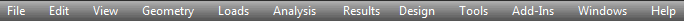 Note: Menus are adjusted to successive modules (structure definition, results preview, and design). The menu that is currently presented on the screen corresponds to the active (highlighted) viewer, table or graphic editor. Click a viewer or table to change the menu.
