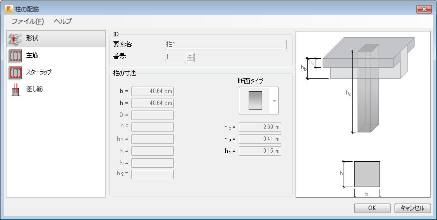 他のタイプの柱の断面(例えば、Z 断面、半円形断面等)を定義できますが、これらの断面タイプに対して柱の配筋は生成されません。