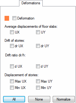 When the Deformation tab is selected on the Diagrams for buildings dialog, the following displays: