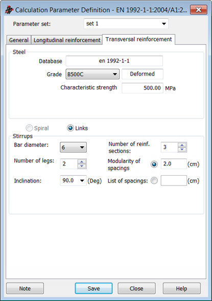 Calculation Parameters Definition - Transversal reinforcement tab (Eurocode 2)