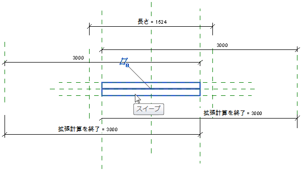 [要素を非表示]の順にクリックします。詳細レベルが[詳細]のスイープが非表示となり、鉄骨要素のウェブを表す 2 本のシンボル線分が表示されます。必要に応じて拡大表示することができます。