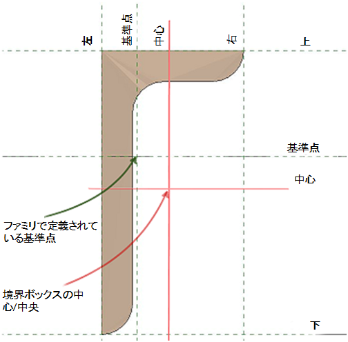 一部のケースでは、構造フレーム要素のファミリ基準点が、要素の境界ボックスの中心に一致しない場合があります。