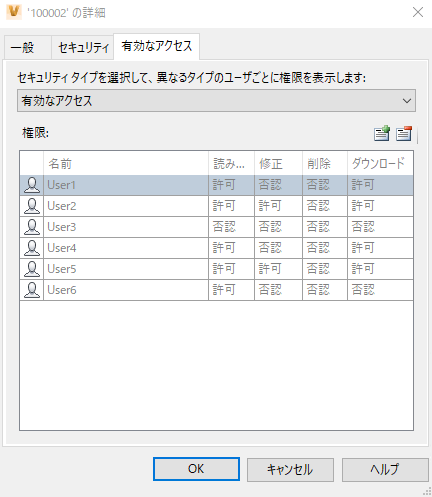 注: 個々のユーザ権限のみを表示することができます。グループを[有効なアクセス]タブに追加することはできません。