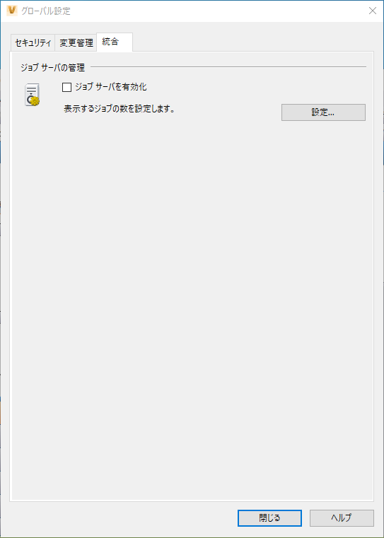 [グローバル設定]ダイアログの[統合]タブでジョブ サーバを有効にします。