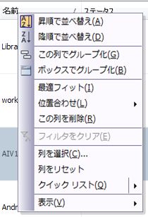 各列ヘッダのコンテキスト メニューに、その列に表示される情報をカスタマイズさまざまなオプションが用意されています。 ![]() |