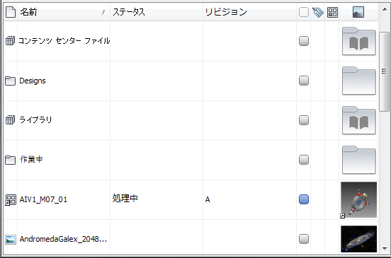 グリッド内では、リスト ビュー、アイコン ビュー、詳細ビューなど、複数のビューを使用できます。オブジェクト データは、行と列のスプレッドシート形式のレイアウトによるグリッドに表示されます。グリッドの各列は、Vault のプロパティを表します。目的のプロパティのみが表示されるように、エンド ユーザがグリッドをカスタマイズすることができます。