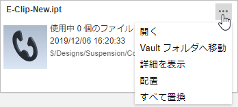 選択したパーツを Vault で開きます。 |