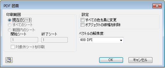 - [オプション]ボタンをクリックして、ファイルの印刷範囲、表示設定、またはベクトルの解像度をカスタマイズします。[OK]をクリックします。