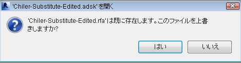 .rfa ファイルを上書きするかどうかを確認するメッセージが表示されます。