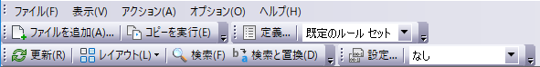 ツールバーは、[ファイル]、[表示]、[アクション]、[オプション]、および[ヘルプ]の 5 つのメニューで構成されています。