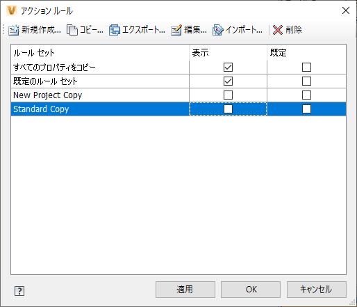 - 同じ条件とプロパティの設定で新しいルールを作成するには、既存のルール セットを選択し、[コピー]をクリックします。