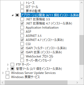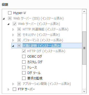 - 左側の[サーバーの役割]を選択し、[役割]リストの[Web サーバー(IIS)]チェック ボックスをオンにします。