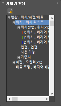 애니메이션 메뉴를 사용하여 제어기를 지정하면 리스트 제어기가 기본값으로 자동 지정되며 선택한 제어기가 리스트에서 첫 번째로 배치됩니다. 이 동작은 모션 패널이나 트랙 뷰에서 제어기를 지정하는 경우 즉, 지정한 제어기만 지정되는 경우와 다릅니다.