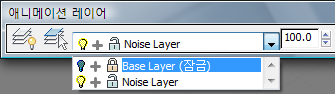 레이어의 애니메이션 변경 기능을 토글하려면 해당 레이어의 잠금 아이콘을 클릭합니다.